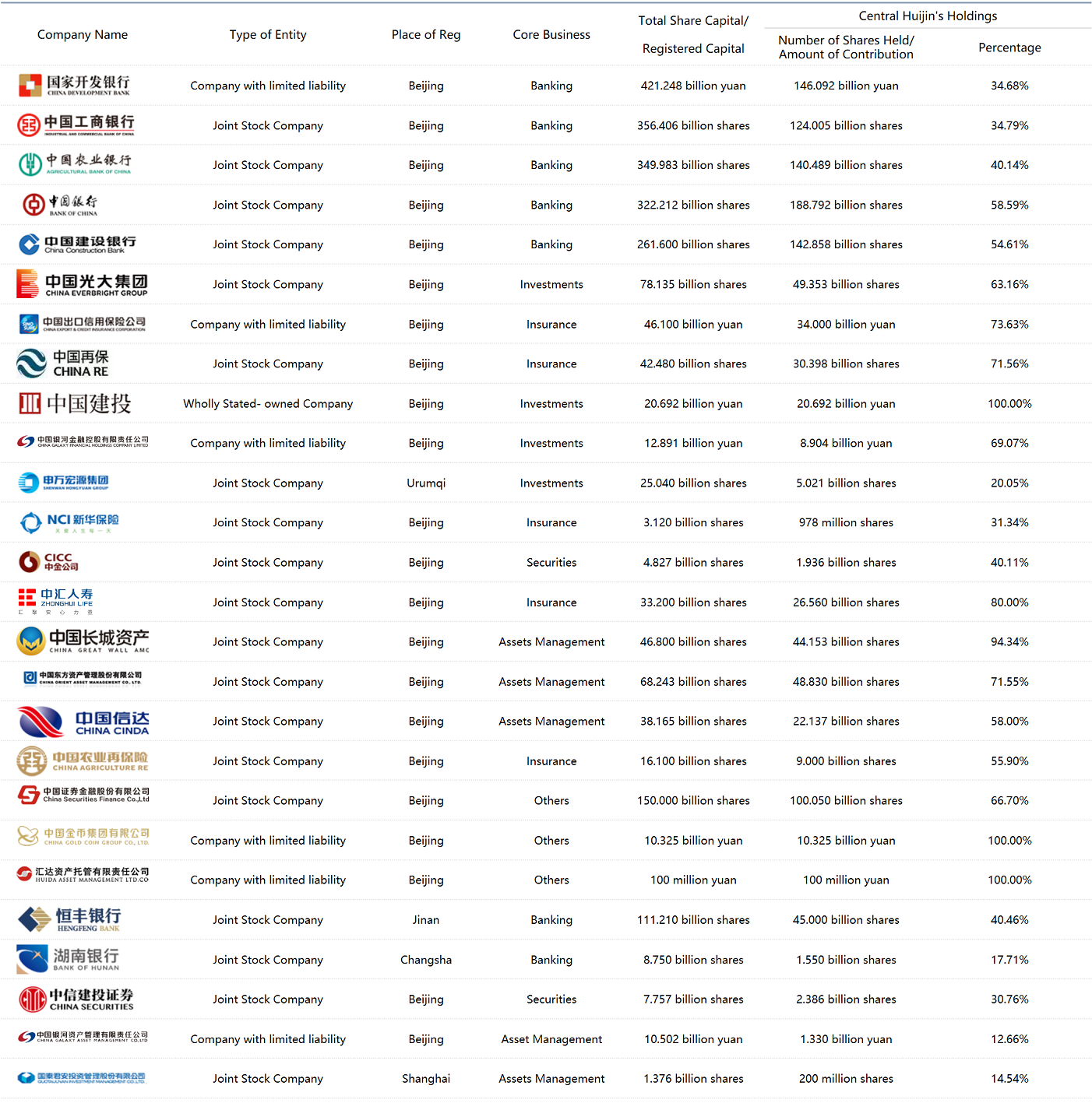 As of December 31st, 2025, Central Huijin directly owned equities of 26 financial institutions.